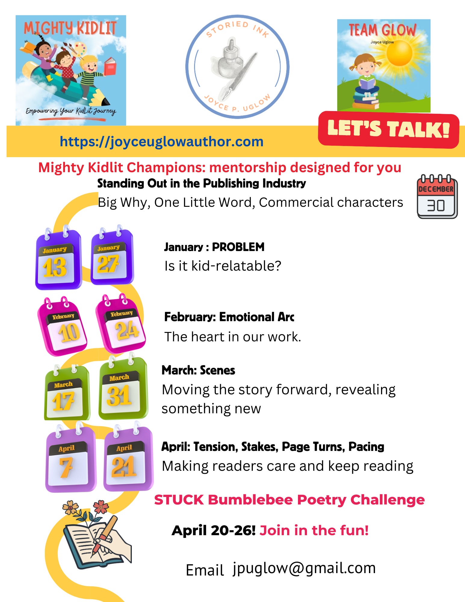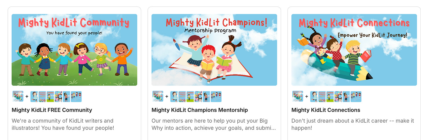 Team GLOW got started on December 30, but you can join in any time. To do so, go to Mighty Kidlit. There, you will see three levels of memberships offered by founder, Michele Ziemke. Questions? Reach out to me here on SubStack. Team GLOW is a part of the Mighty Kidlit Champions level.