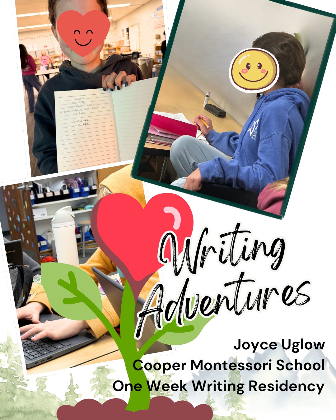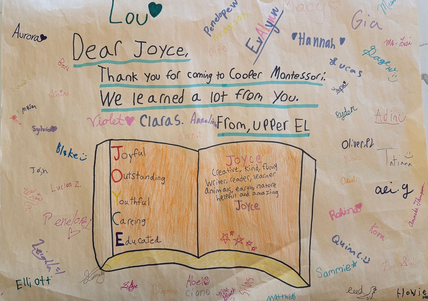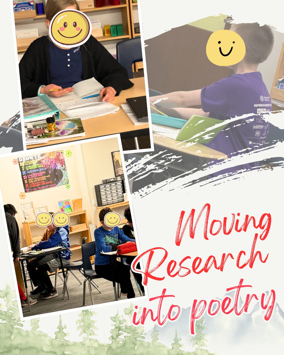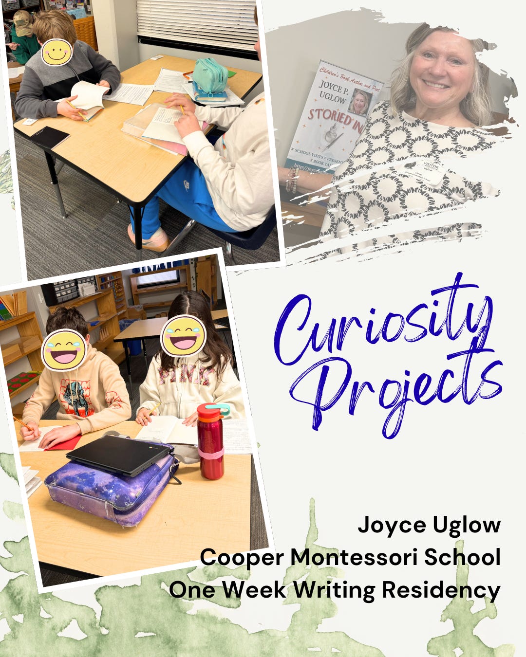 Jackie Bladow, upper elementary Montessori ELA teacher, and I planned my four-day visit to coordinate with ongoing curriculum connections. Included in the students’ work plans was to task of digging into a topic they hadn’t previously researched. The 4th, 5th, and 6th grade students began their deep dive into their own curiosity questions, which in turn prompted more inquiry wonderings along the way. I came into the residency knowing that the students’ research projects were well underway.